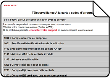 | La création d'un compte de Télésurveillance à la carte étape par étape | L'utilisation de la Télésurveillance à la carte étape par étape | Liste des erreurs - Les codes d'erreurs possibles lors de création de votre compte |