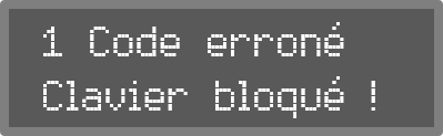 Code à 4 ou 6 chiffres selon la programmation du clavier. XX est le numéro d'utilisateur à 2 chiffres (de 03 à 96).